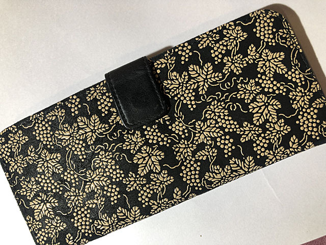 - ★ブドウ柄 甲州印伝★長財布【濃紺】札入れ★印傳屋 鹿革/長さ19cm/カード2枚入れ・小銭入れ