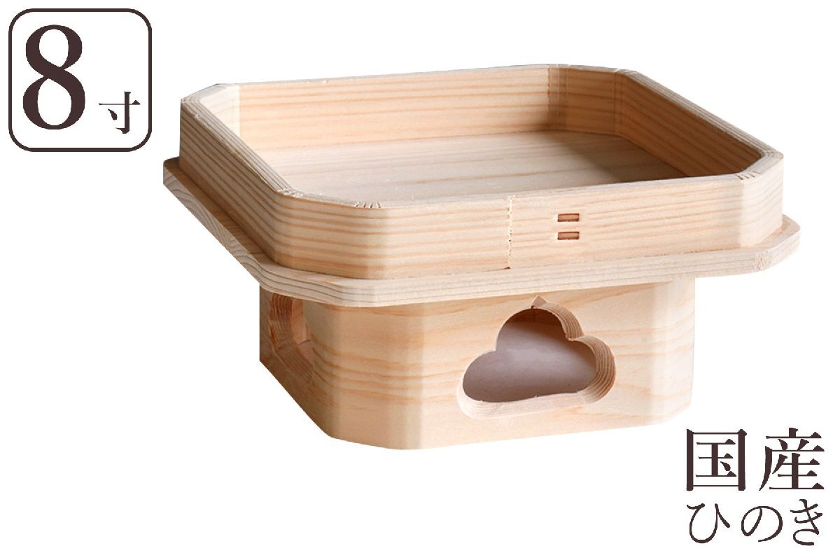 - 三宝 国産 ひのき 遠山三宝・遠山三方 8寸 神棚 神具 三方 高級桧 お月見 さんぽう 台