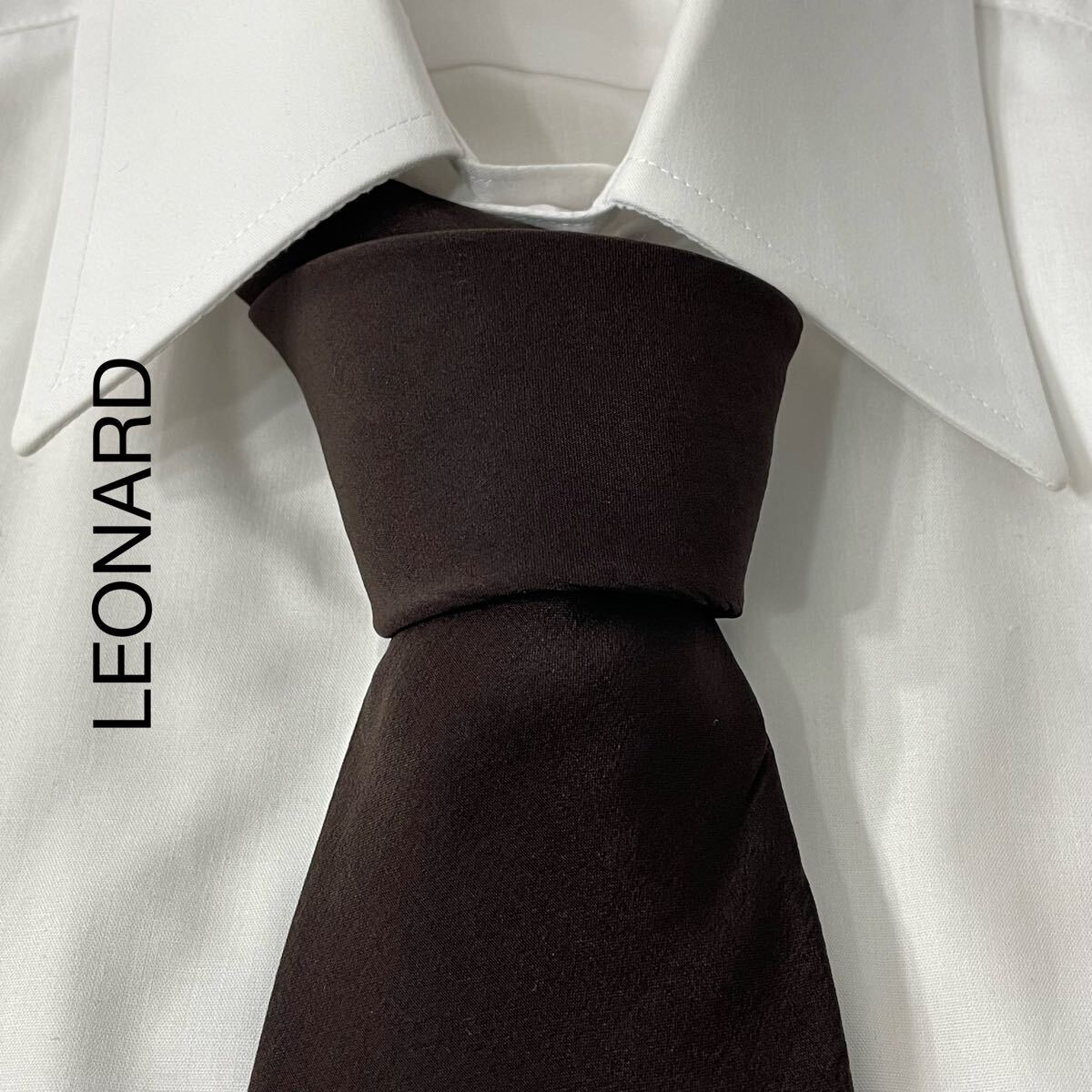 - LEONARD レオナール 植物柄 デザイン シルク ネクタイ イタリア製 ブラウン TG908