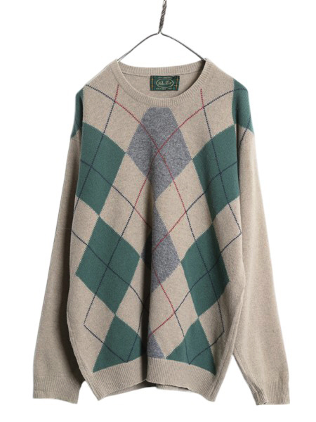 > 80s スコットランド製 PETER SCOTT アーガイル ニット セーター メンズ M 古着 ヴィンテージ ラム ウール クルーネック 総柄 マルチカラー