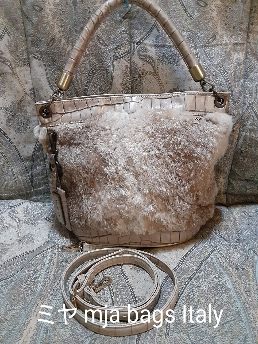 - ミヤ mja bags Italy 本革×リアルファー/2way/斜め掛けショルダーバッグ