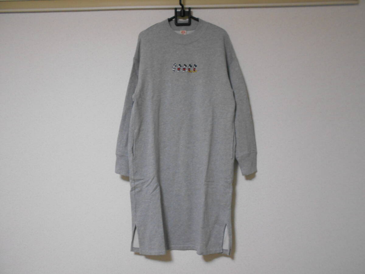 > UNIQLOユニクロ☆UT×Disney MICKEY☆杢グレー☆スウェットトレーナーのチュニックワンピース☆ミッキーマウスの刺繍入り☆Lサイズ☆美品