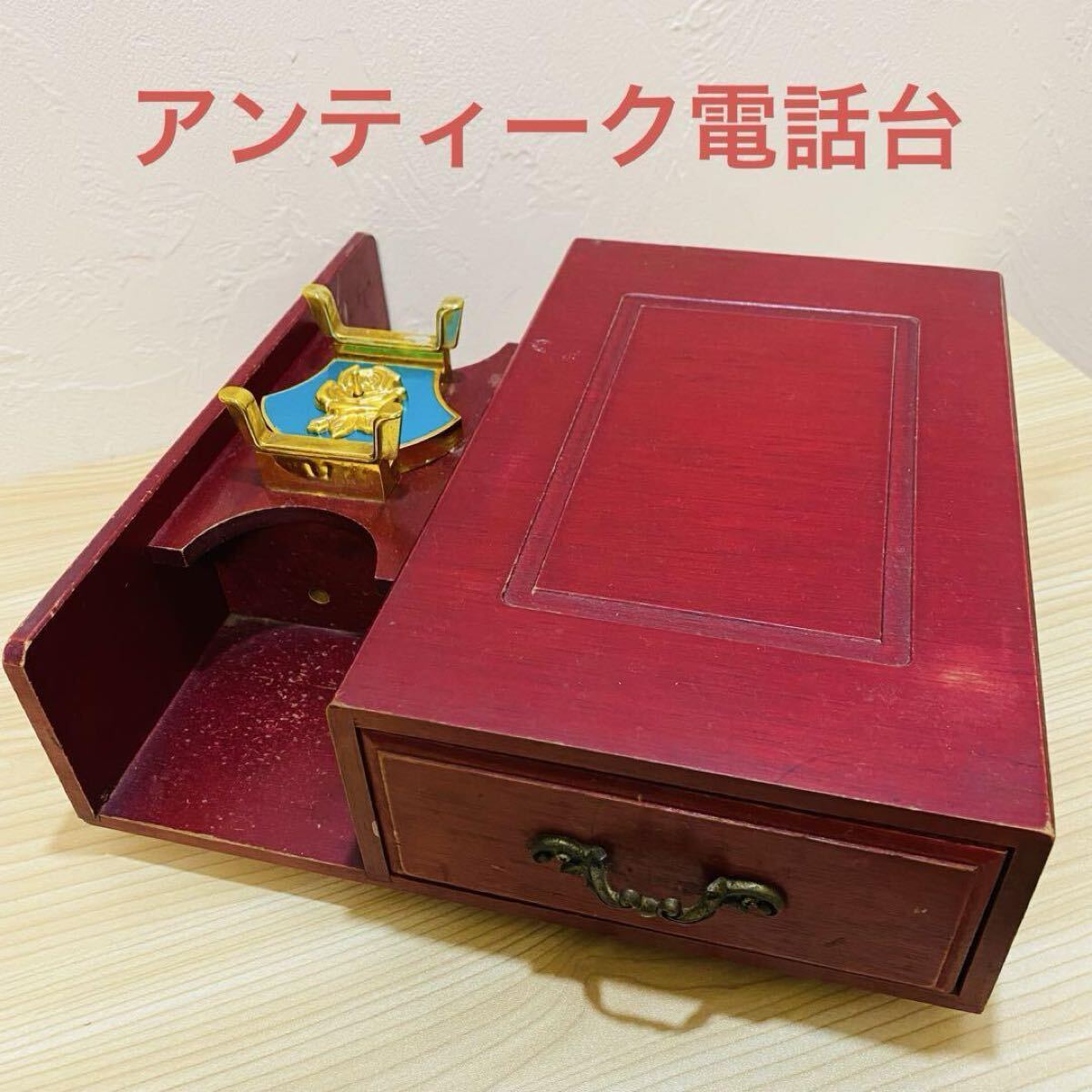 > 昭和レトロ★赤い木製アンティーク電話台 ボックス バラの装飾 ワインレッド飾り台 ヴィンテージヨーロピアンアンティーク