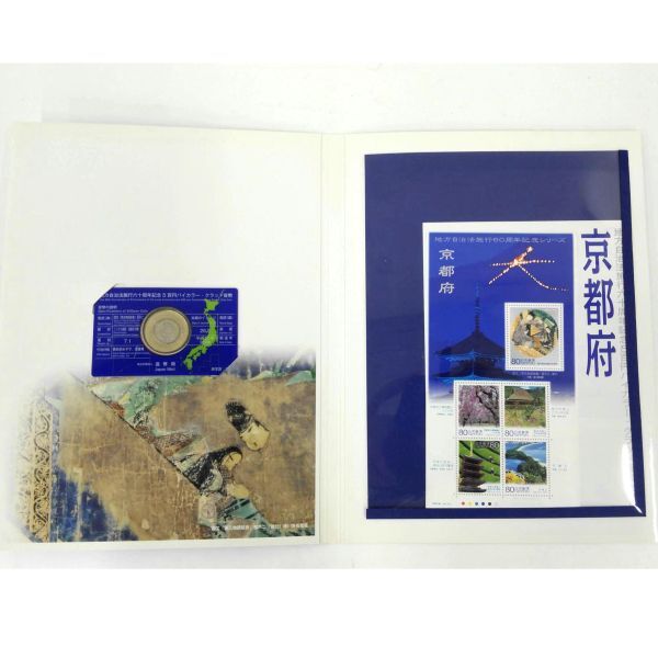 - 送料無料 京都府 地方自治法施行六十周年記念 五百円バイカラー・クラッドプルーフ 切手付き Bセット①