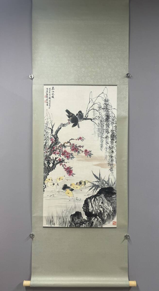 - 中国書画 掛け軸 近現代 銭松巌書「春江水暖」紙本立軸 書道巻物 真筆逸品 肉筆保証 唐物 時代物 古美術 LOT-4417