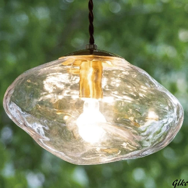 - 【ガラスに反射する光のゆらぎが情緒的な雰囲気を作り出す】ペンダントライト 白熱球付 ガラス ゴールド おしゃれ ゆらぎ アンバー