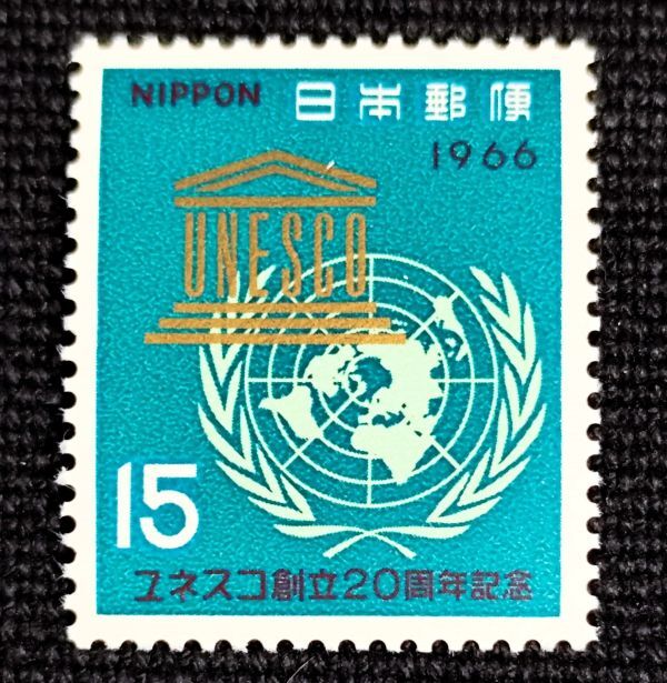 - [25010710]【ユネスコ創立20周年記念】単片「ユネスコと国連マーク」15円 1966年発行 美品