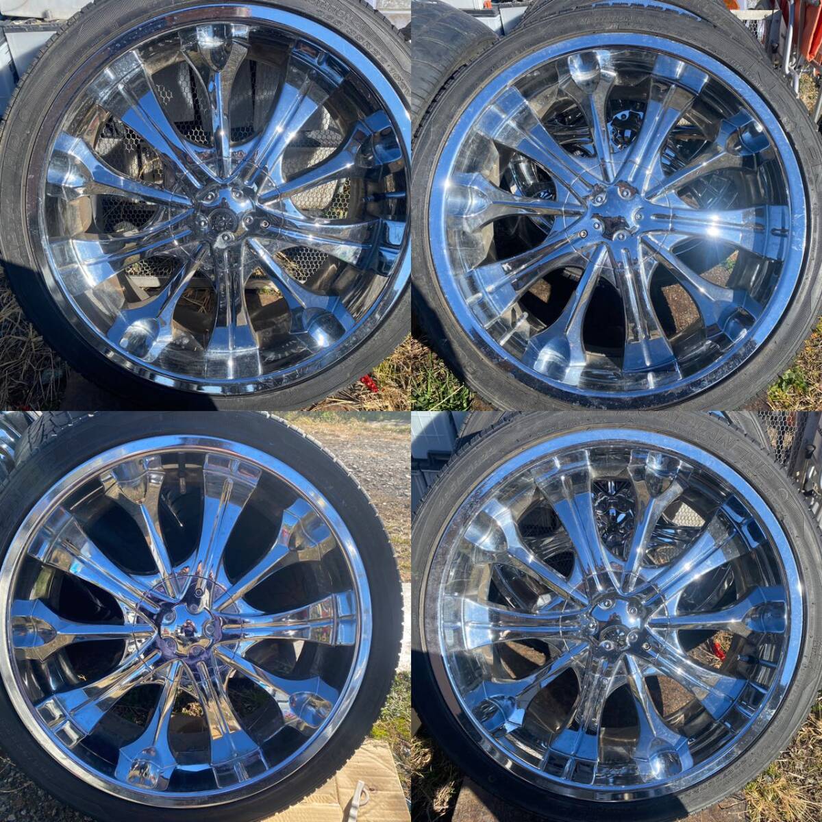 - 【埼玉県】アルミホイール サイズ22インチ5穴 希少 稀少 4本セット 廃タイヤ付き