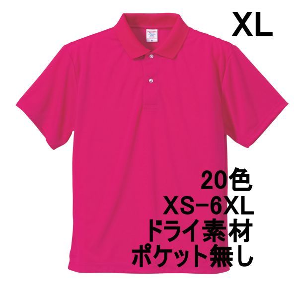 - ポロシャツ XL トロピカル ピンク ドライ素材 ベーシック 無地 半袖 ドライ 吸水 速乾 胸ポケット無し A691 2L LL 591001 5910-01 5910