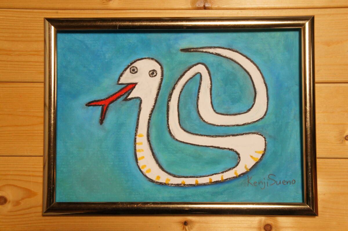 - 【へび】手描き 肉筆 クレヨン画 絵画 A4サイズ 764,Crayon painting, oil pastel painting, original art,蛇