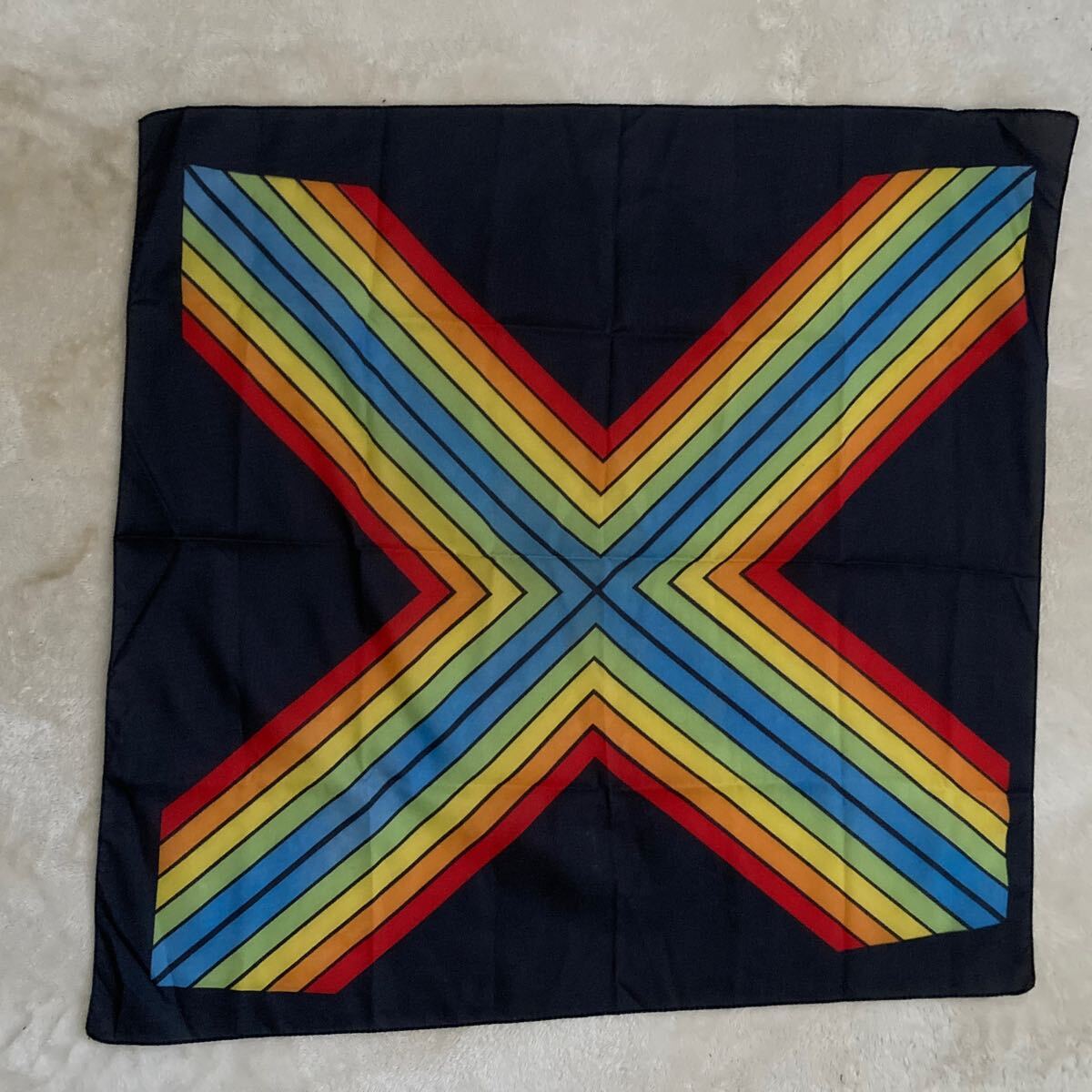- ビンテージアンティークストライプデザイン レインボーX柄スカーフ 約68cm