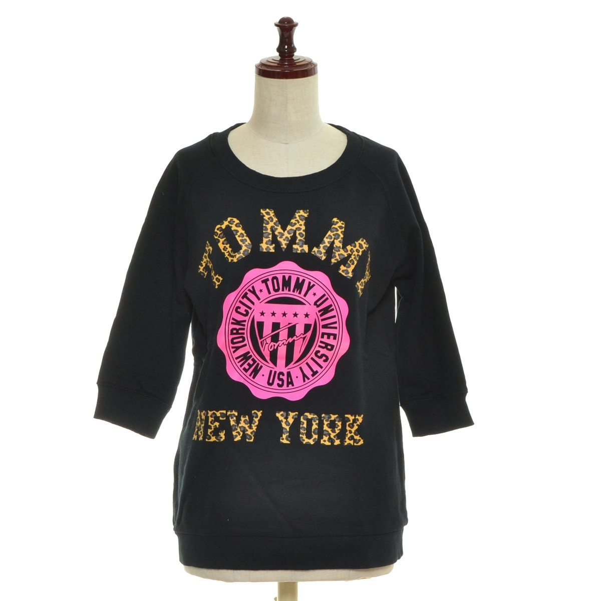 - □513056 TOMMY トミーヒルフィガー ◯トレーナー パイルプリント スウェットPO サイズM レディース ブラック
