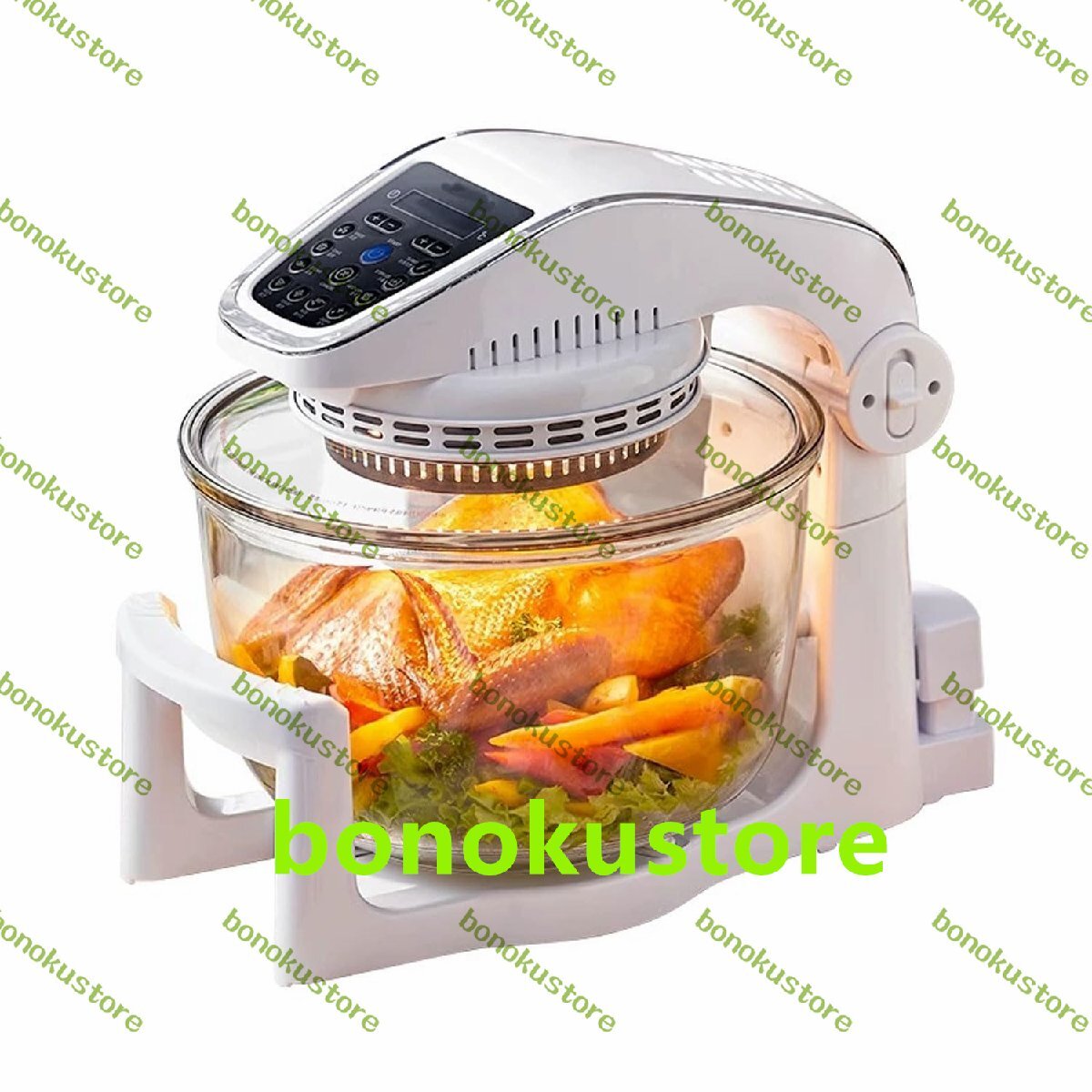- 7Lポータブルエアフライヤー 1000W家庭用電気ビジュアル無煙フライヤー 50-250℃&0-120分 エクステンダーリング付き フライドポテト