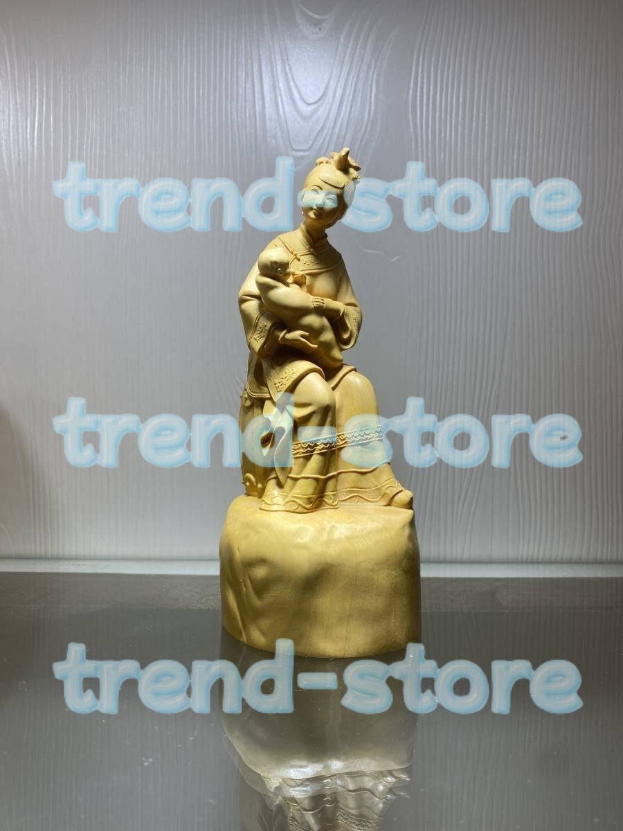 - 新作 慈母 置物 古美術品 彫刻工芸品 木工細工 手作り 総柘植材 木製 珍品