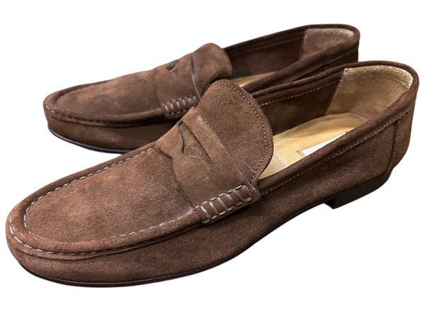 - 良品 レア BARNEYS NEW YORK バーニーズニューヨーク アンラインド スエード コインローファー 茶 イタリア製 26cm US8M ペニーローファー