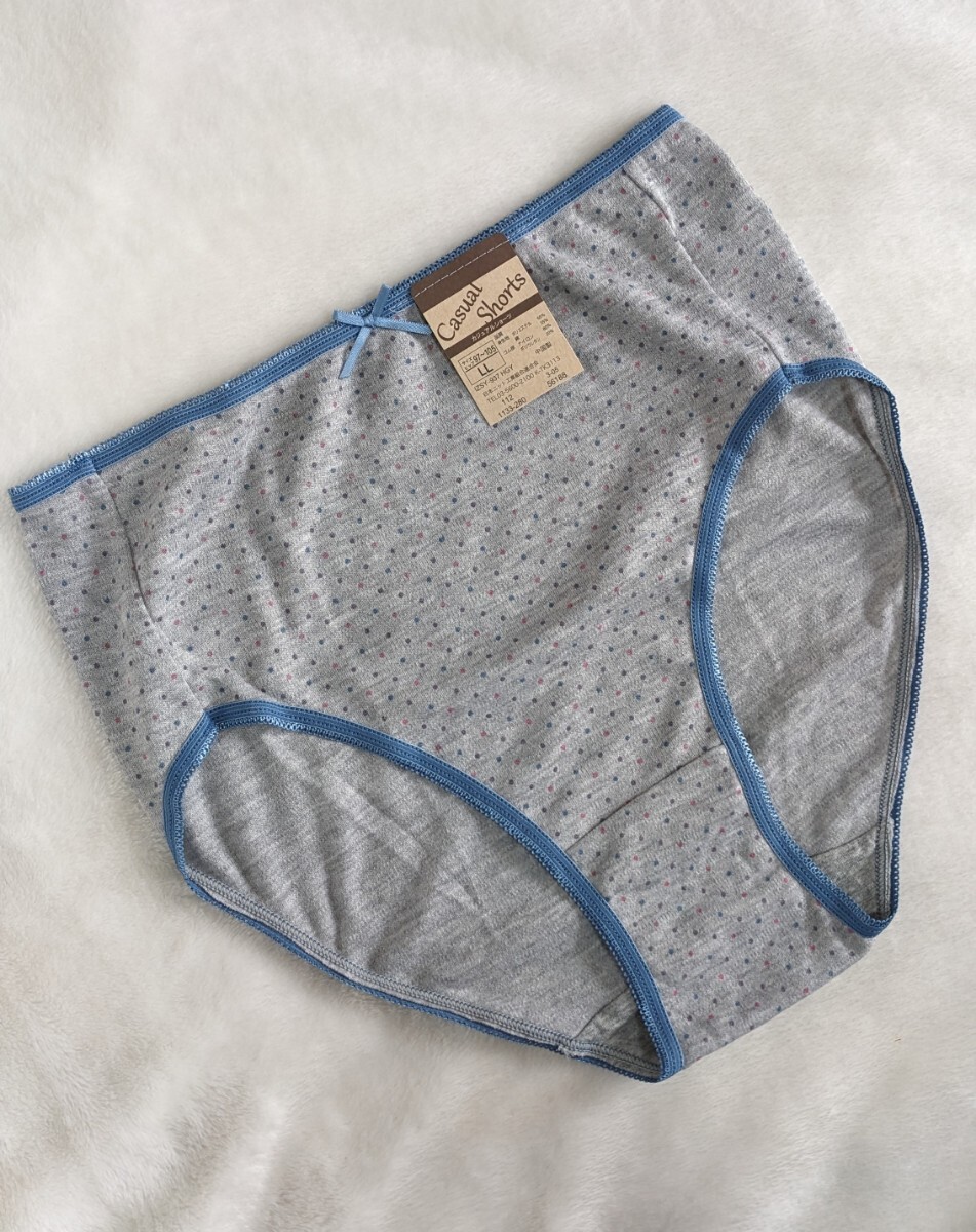 - 普段使いに☆キュートなパンティLL☆未使用☆可愛ドット柄☆優しい履き心地☆綿混☆グレー☆匿名配送可☆タグあり☆
