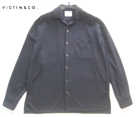 > 美品日本製!!ヴィクティム VICTIM&Co.*ビッグシルエット 胸ポケット付き ポリレーヨンジャージー開襟シャツ M 濃灰 ダークグレー