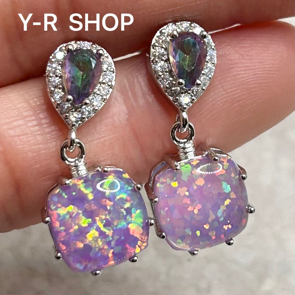 - ミスティックレインボートパーズとラベンダーファイヤーオパール のゆらゆらエレガントピアス★レディースシルバー 925刻印ハワイアン新品