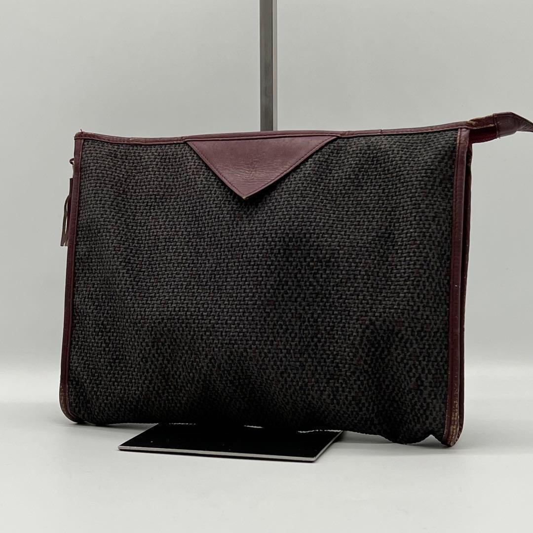 - 【美品】Yves Saint Laurent イヴサンローラン ロゴ クラッチバッグ セカンドバッグ ポーチ グレー メンズ レディース AI420108D