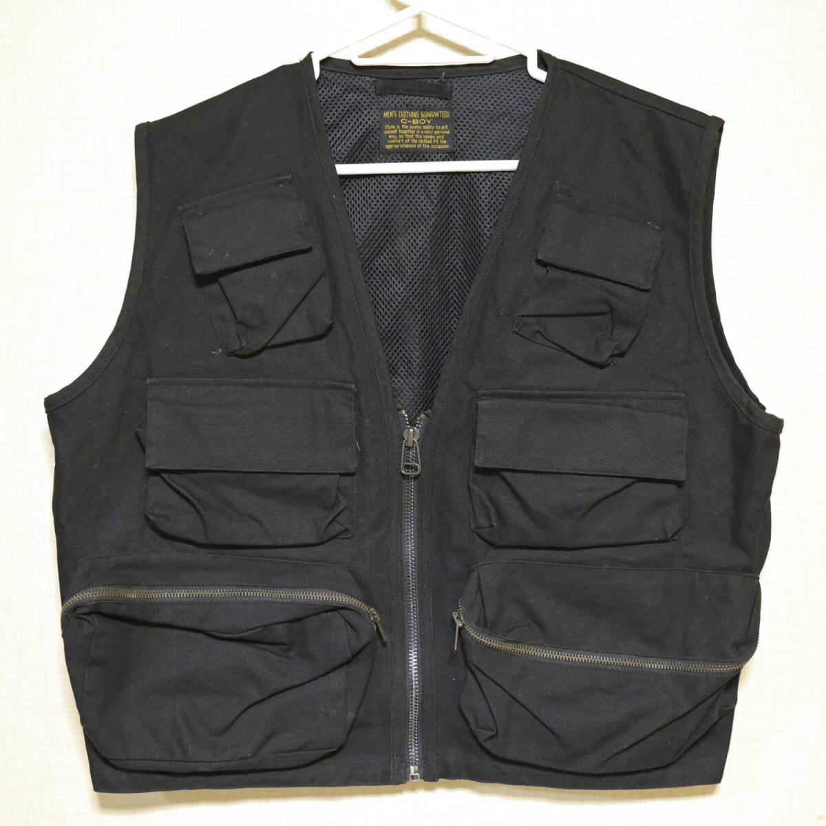 - refle【中古】 アウトドア フィッシングベスト 多ポケット ベスト C-BOY 綿100% 汚れあり サイズ不明 ブラック 黒[①]