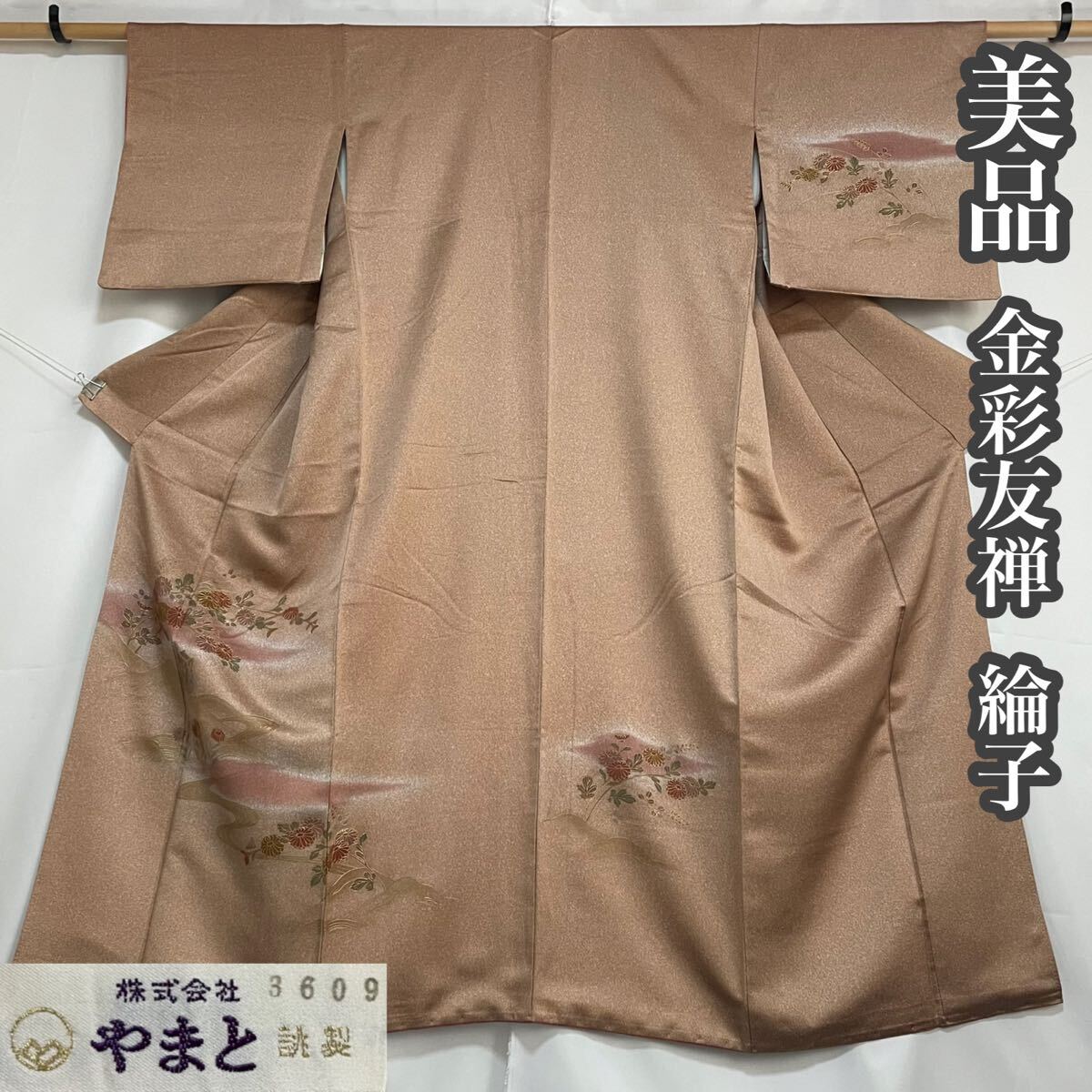 - #E845 美品 付け下げ やまと誂製 金彩友禅 綸子 薪糊散らし 暈し染め 御所車 正絹 和装 和服 フォーマル 着物【wellriver】