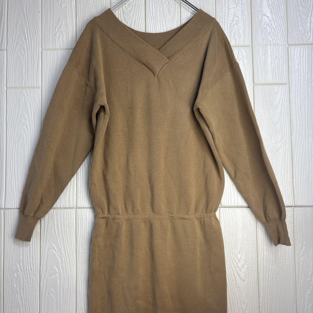 - ベージュ ニットワンピース Vネック 102cm 汚れあり