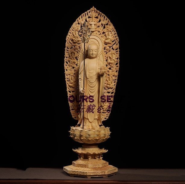 - 木彫仏像 地蔵菩薩立像 地蔵尊 地蔵 置物 仏教美術 精密細工 仏師で仕上げ品 切金 地蔵菩薩 立像 高さ48cm