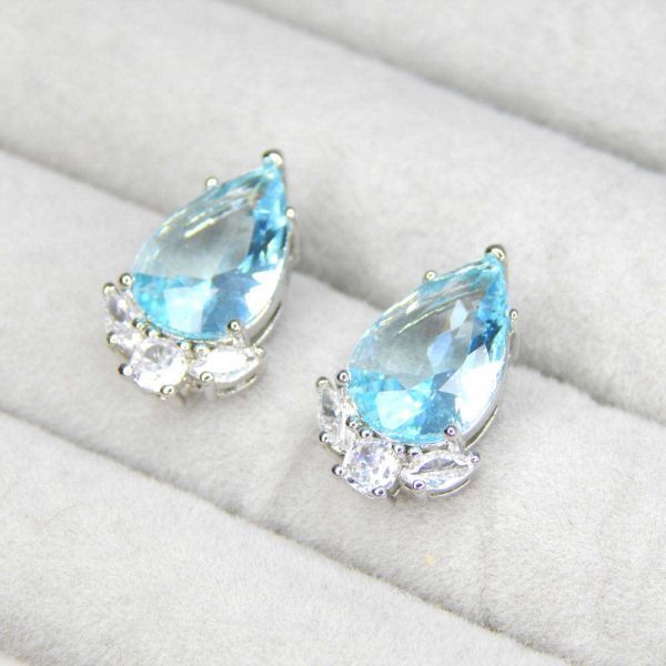 - 即決★送料無料 訳有品 PS-5 大粒ブルー ペアシェイプ型 CZダイヤモンドピアス レディース キュービックジルコニア シルバー アクセサリー