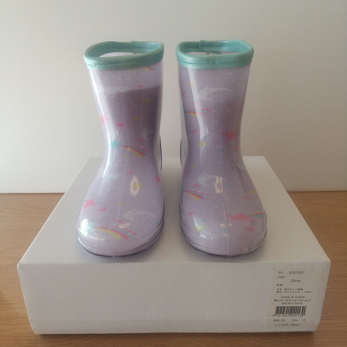 > キッズ 長靴① [サイズ 20cm(20.0EE)] 未使用 ラベンダー+ユニコーン、星、その他柄 orangebonbon ㈱ユアーズアーミー・ワールド