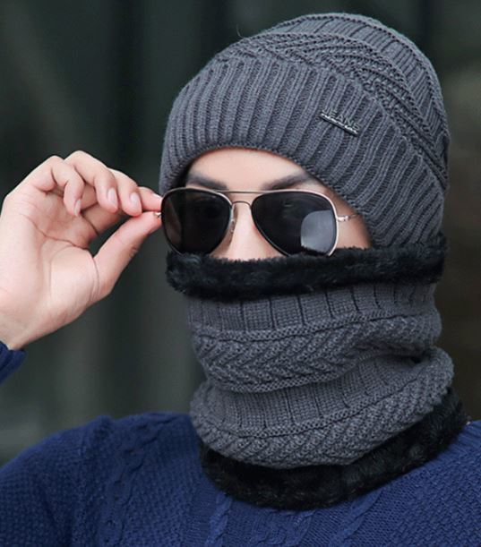 - 即出荷 ニット帽 キャップ ネックウォーマー 2点セット 暖かい 男女兼用 裏ボア 防寒 保温 自転車 スキー 裏起毛 アウトドア