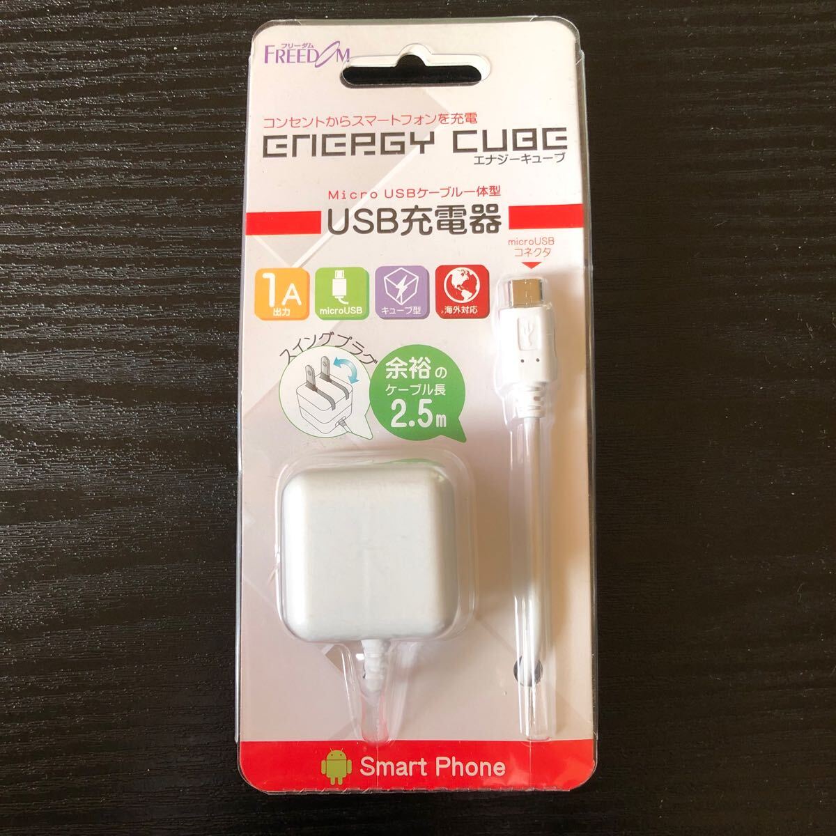 > 新品・未使用★エナジーキューブ Micro USBケーブル一体型 USB充電器★海外対応 2.5m