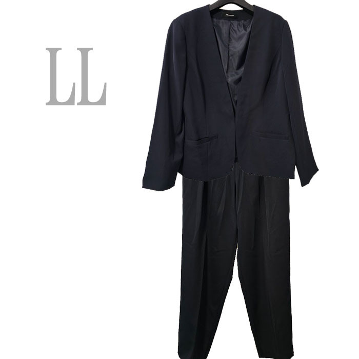 - ●新品/2点/薄手/スーツ/ジャケット/パンツ/LL/ネイビー/レディース/リクルート●&1265