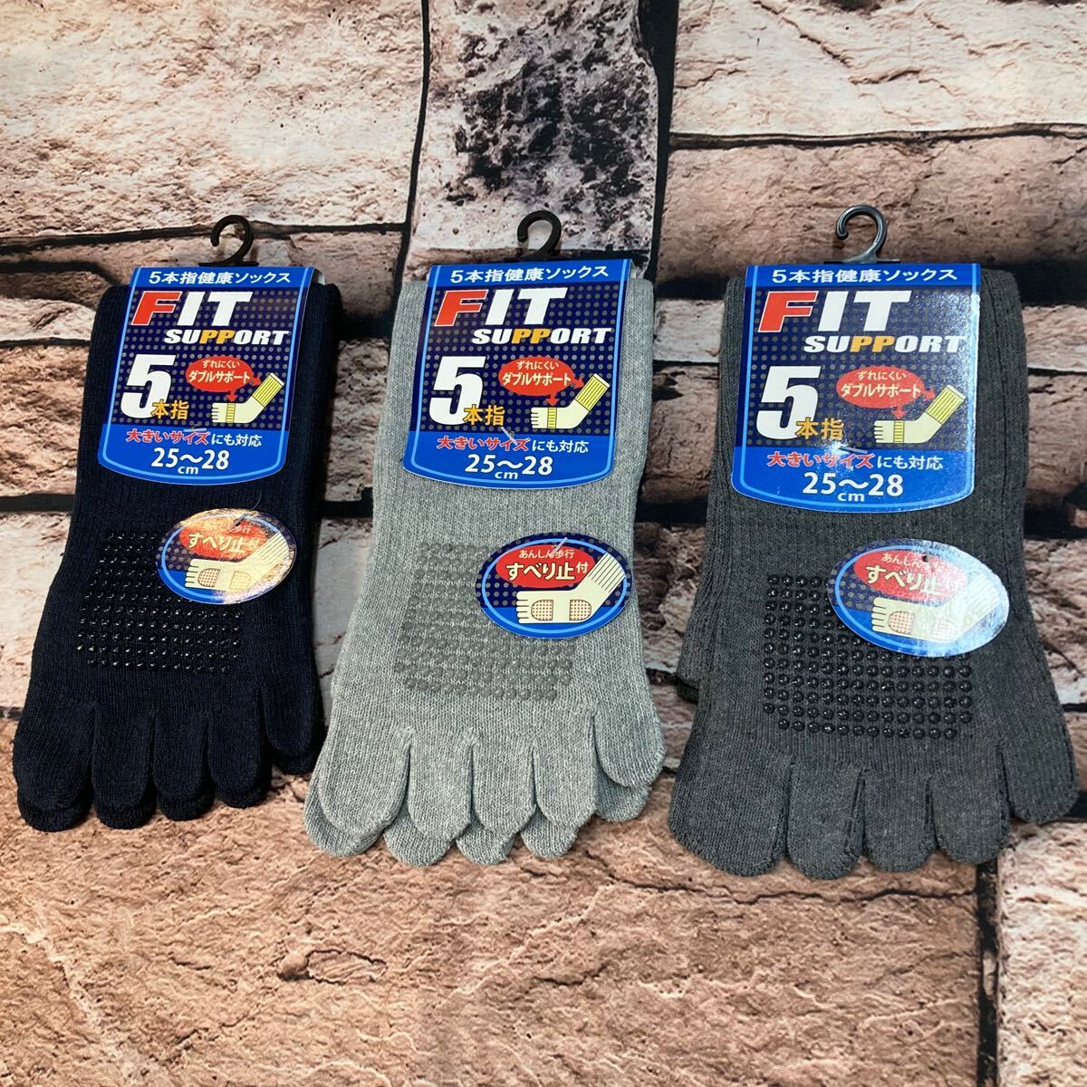 - 送料無料!『3足組』ズレにくい Wサポート&足裏面滑り止め加工!綿混5本指ミドル丈ソックス