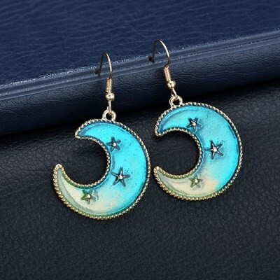 - ピアス シンプル 宇宙 三日月 ファッション ブルー ムーン レディース ゴールド 惑星 サークル 非対称 ロング #C56-4