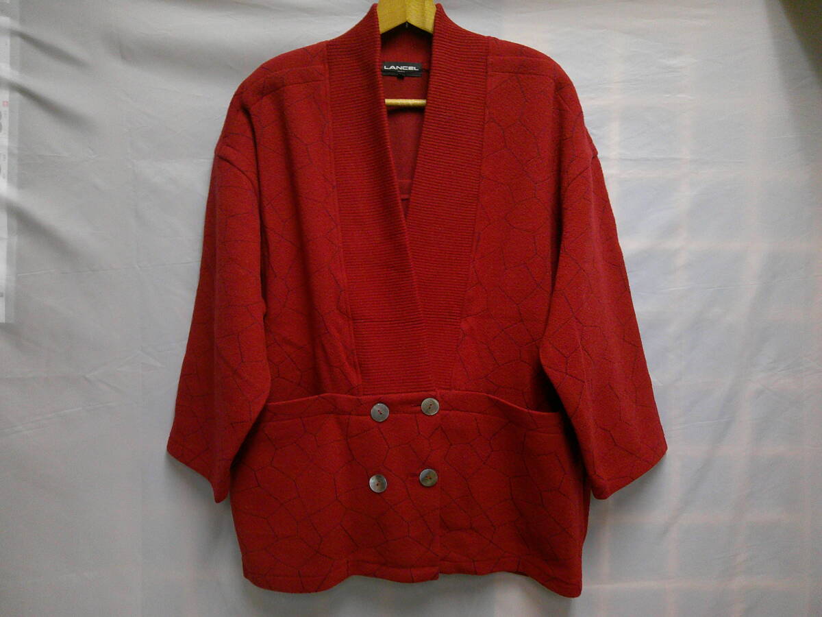 - LANCEL PARIS ランセル ニット セーター レッド M パリ ダブル風 カーデガン型 亀甲模様風