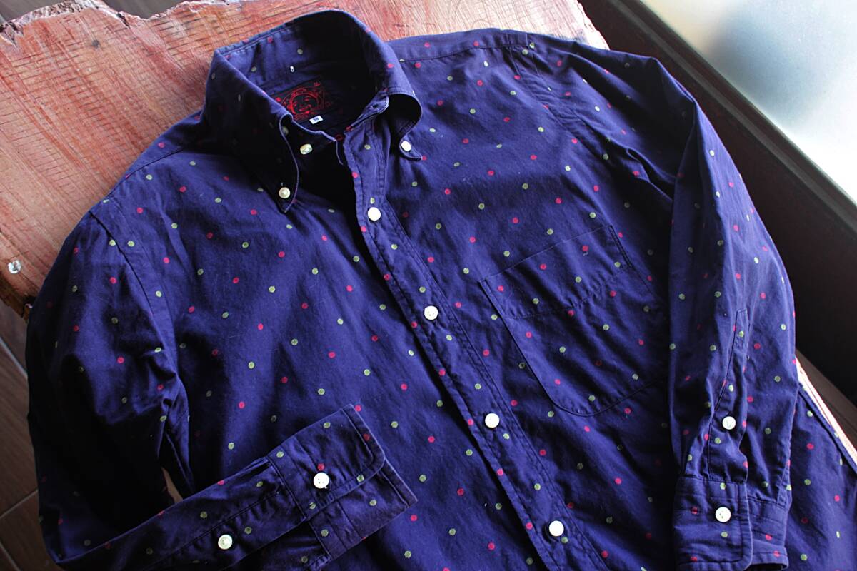 > EVISU(エヴィスジャパン)★/ ドット柄ボタンダウンシャツ38/M パープルネイビー★襟ロールが美しい