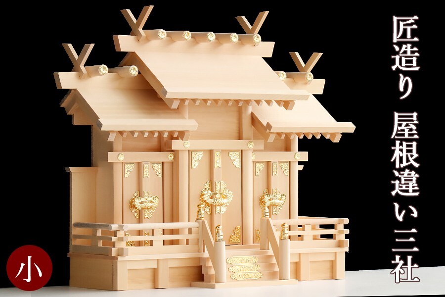 - 匠造り ■ 木曽ひのき ■■ 王道 屋根違い 三社 小型 ■ 極上 三宮 ■■ 神棚 単品