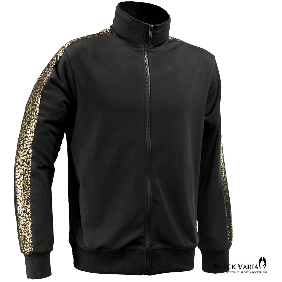 > 5#94347-bk [SALE] ブラックバリア トラックジャケット ヒョウ豹柄 サイドライン 箔プリント ストレッチ フルジップ メンズ(黒) M モード