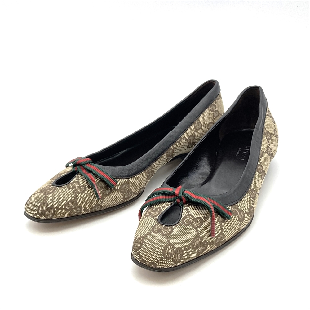 > グッチ GUCCI パンプス GGキャンバス 147723 リボン シェリーライン 35 1/2 C レディース