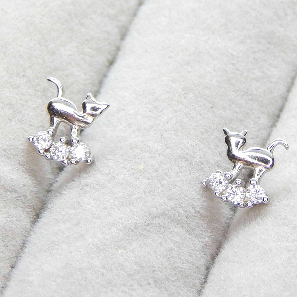 - 残り1点★必見 絶品 ジルコニア 子猫 3連CZダイヤモンドピアス シルバー925 オススメ 限定 プラチナ仕上 超美品 レディース イヤリング化可