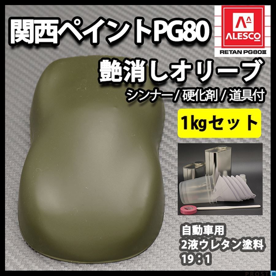 - 関西ペイントPG80 つや消し マット オリーブグリーン 1kgセット / シンナー 硬化剤 道具付 Z25