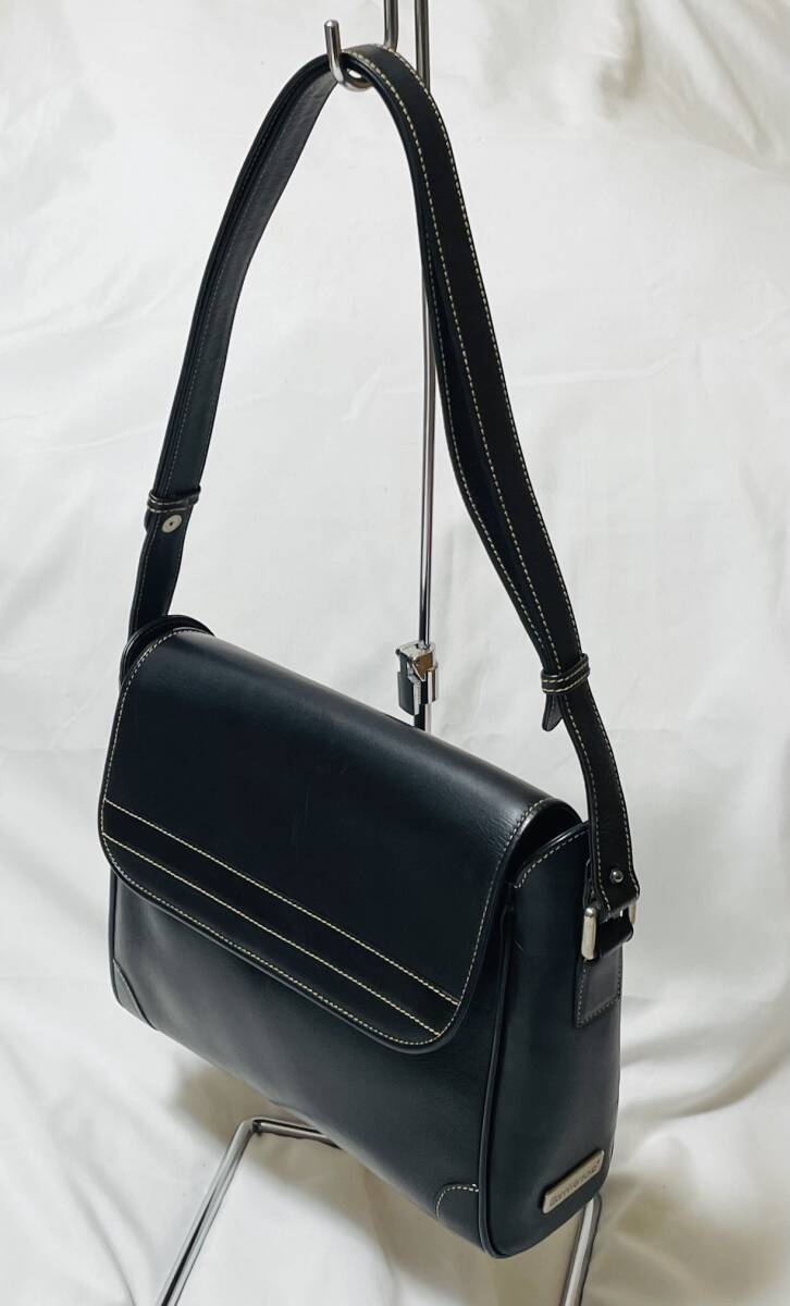 - イタリア製 ジャンニヴェルサーチ GIANNIVERSACE レザー ロゴ プレート ショルダーバッグ ショルダ伸縮 黒 ブラック