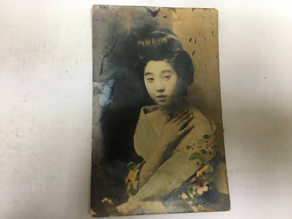 - ★未使用・昭和初期ごろ★「日本髪美女 着物姿 」絵葉書 ポストカード (本間2保管)