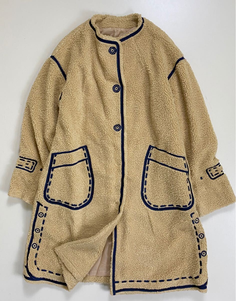 > ★ donna SPICCO ◆ ノーカラー もこもこボア コート ステッチ刺繍 サイズ38 ブラウン ドンナスピッコ ◆W20 DE1か4-09