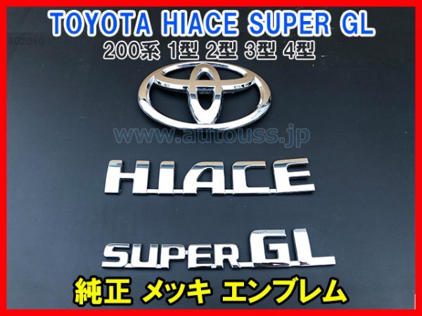 > TOYOTA HIACE SUPER GL 200系 1型 2型 3型 4型 ハイエース スーパーGL 純正 メッキ エンブレム 3点 セット レターパック可能 即決