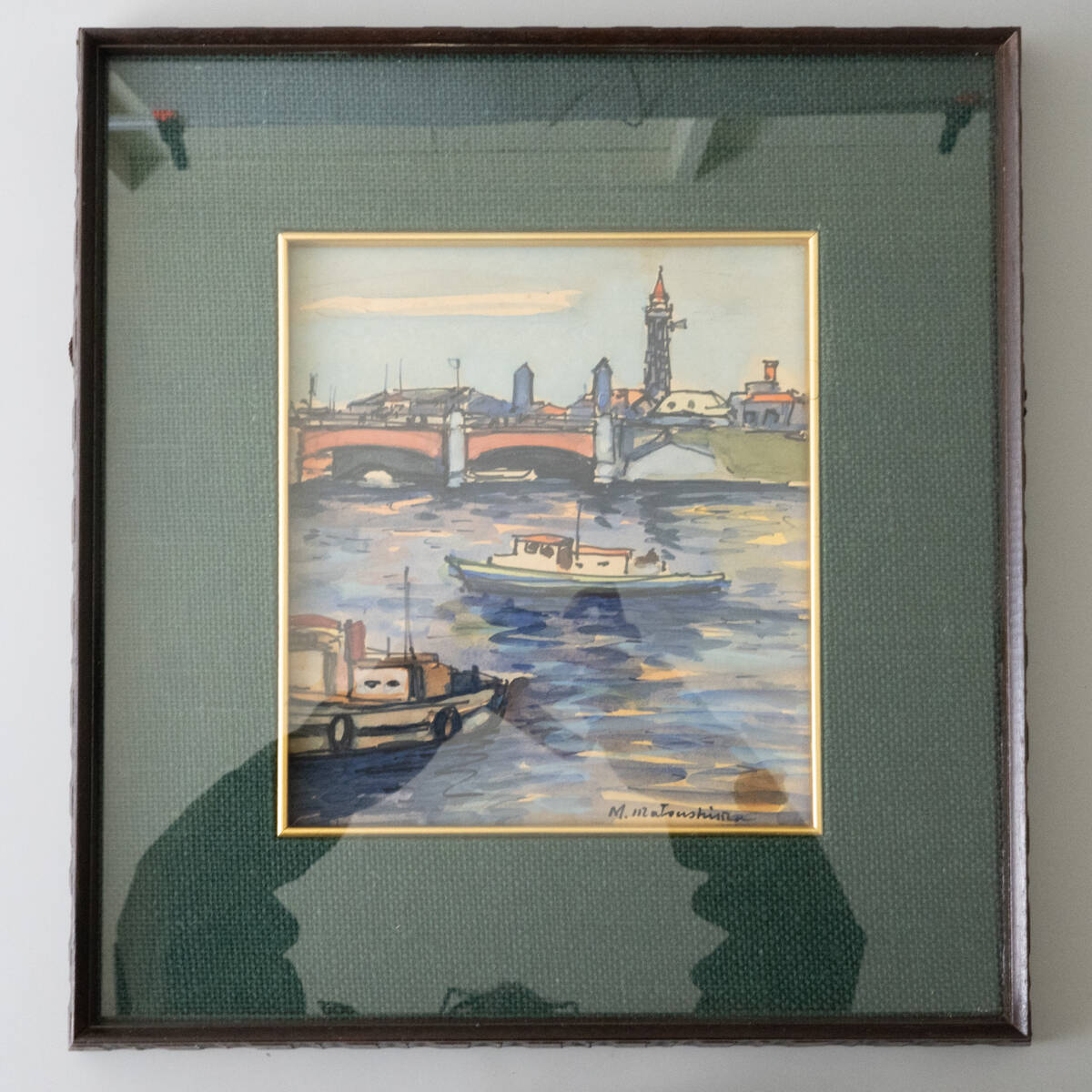 - 真作保証 松島正幸 色紙絵 絵画 水彩画 風景画 額装 独立美術協会会員