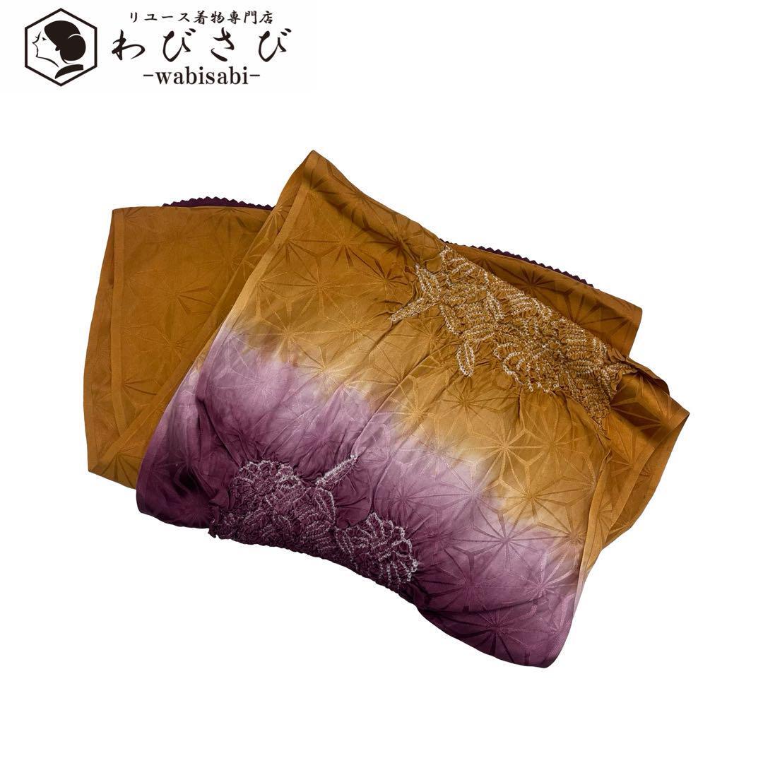 > 和装小物 帯揚げ 正絹 絞り 暈し 花模様 黄茶色 C-5423 着物 きもの kimono 和服 和装 中古 リサイクル着物 【送料無料】