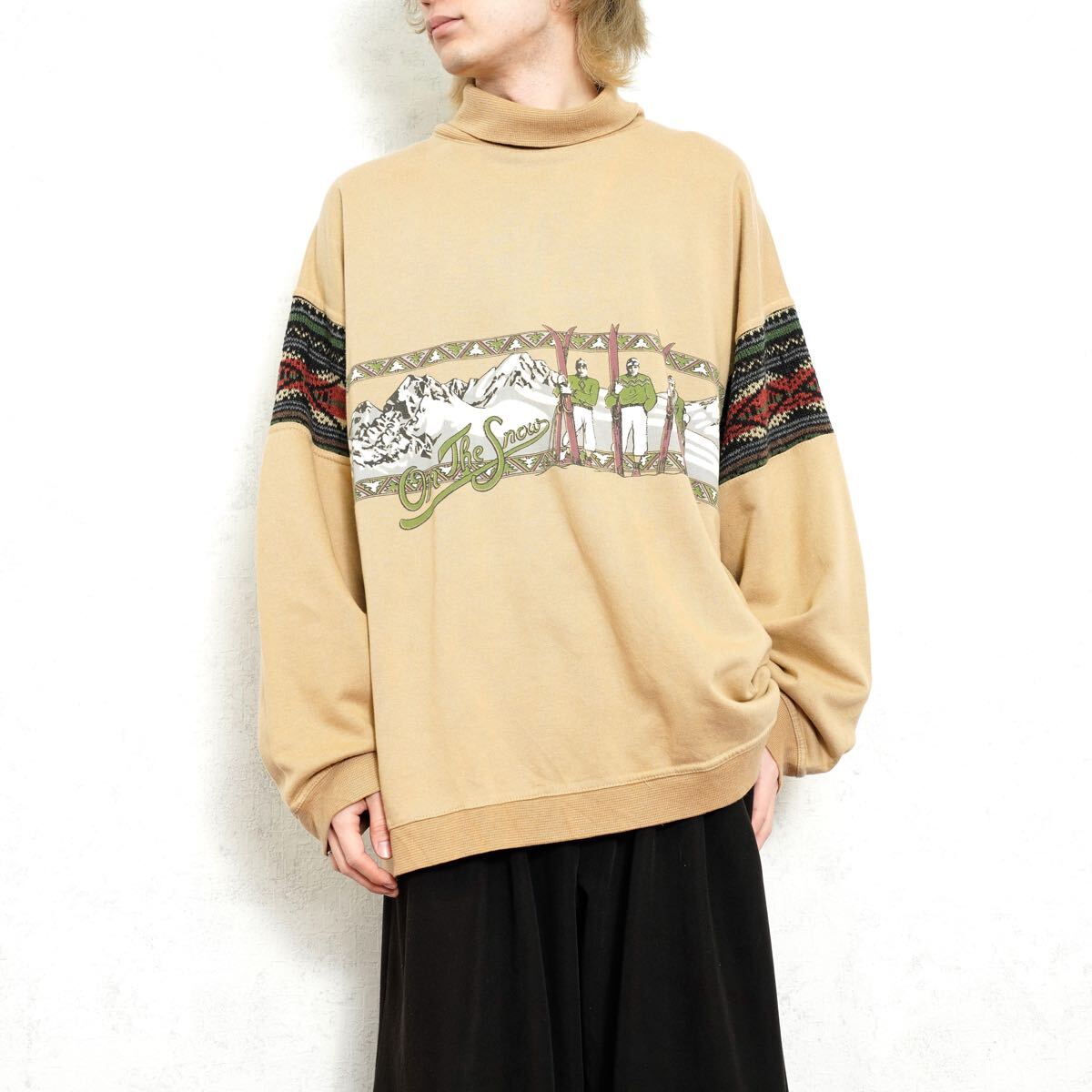 > USA VINTAGE KNIT SWITCHED DESIGN HIGH NECK SWEAT SHIRT/アメリカ古着ニット切替デザインハイネックスウェット