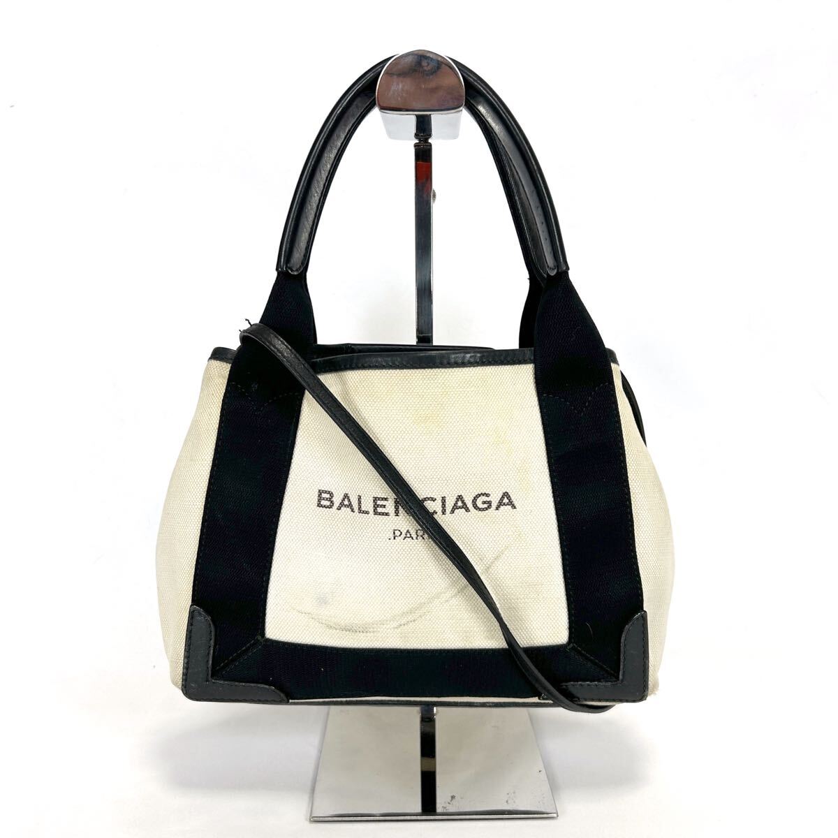 - バレンシアガ ネイビーカバスxxs ミニトートバッグ ショルダーバッグ balenciaga ブラック ホワイト キャンバス