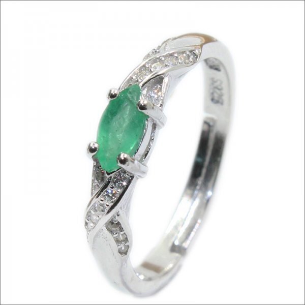 女性のための天然エメラルド婚約指輪、3mm x 6mm、エレガントな925シルバー、ファッショナブル、